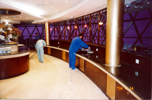 地面清洗:着重处理开荒保洁遗留下的漆点、胶点等污渍 -